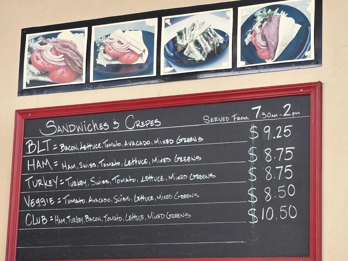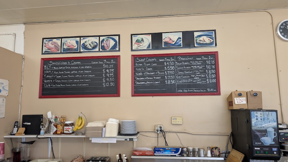 The menu at Dough Boy's Donuts features a variety of baked goods and light meal options suitable for breakfast, snacks, or casual dining. Visitors can expect a selection of donuts and fritters as the primary offerings. In addition to these sweet items, the menu includes savory choices such as quesadillas, crepes, and sandwiches, providing a range of options for different tastes and meal preferences.
